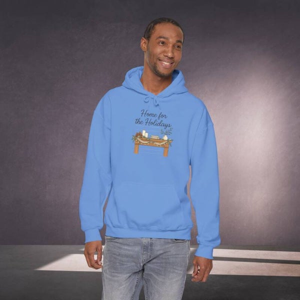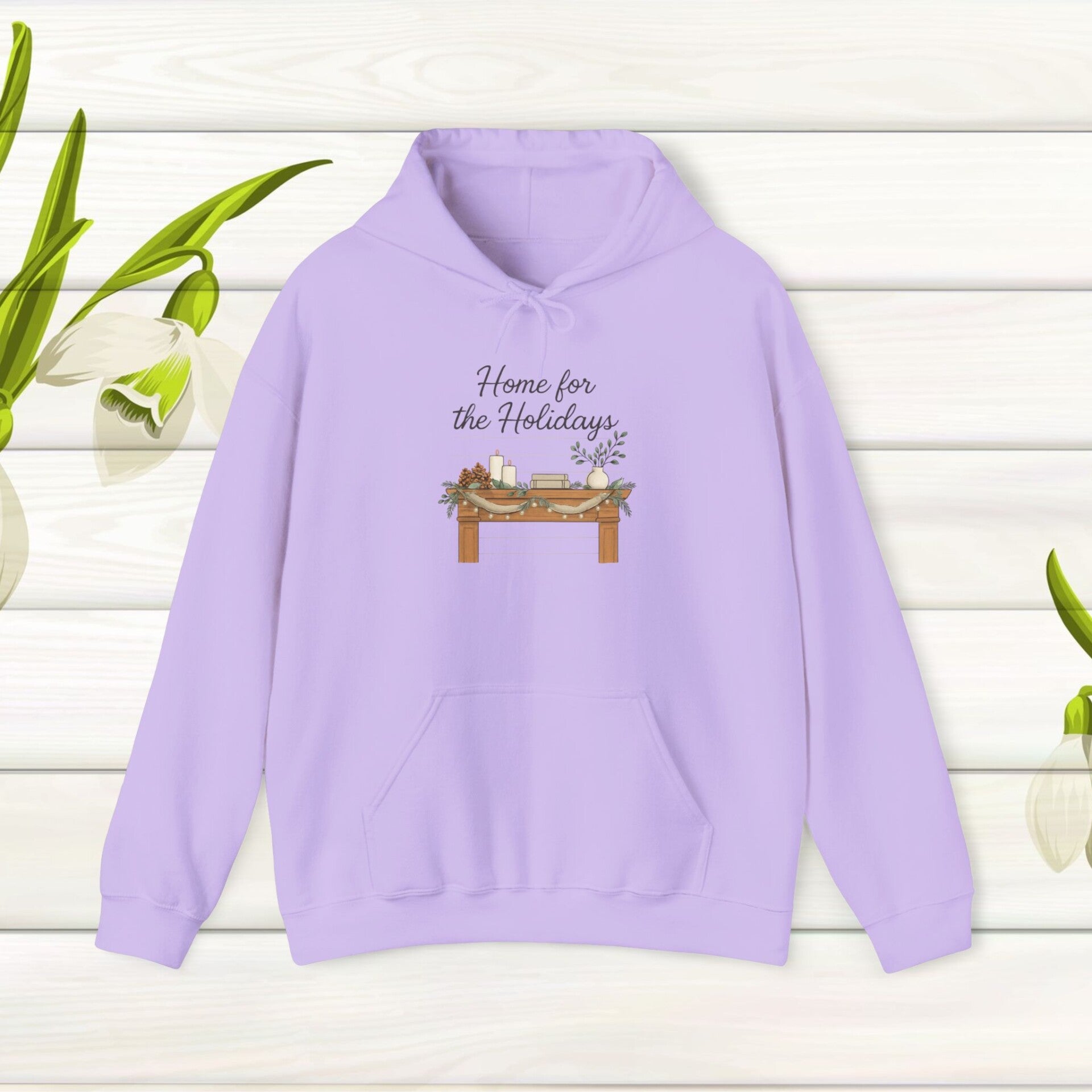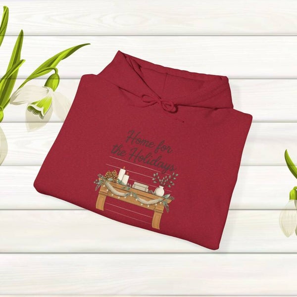 A soft, cozy hoodie that feels like a warm kitchen on a chilly morning. The gentle illustration across the chest — a wooden table laid with holiday greenery, warm bowls, and a scattering of snowflakes — reads “Home for the Holidays” in a handwritten script. Lightweight enough to layer, yet substantial in its medium-heavy knit, it hugs the body with a roomy pouch pocket and a double-lined hood. Wear it during slow, bright winter mornings, while wrapping gifts at the table, or to holiday markets where comfort and quiet charm matter more than flash. The neutral white keeps the artwork as the focus and pairs easily with denim, leggings, or a favorite apron. Product features - Cozy 50/50 cotton-poly medium-heavy fabric (8 oz/yd²) for warmth and softness - Kangaroo pouch pocket to keep hands warm and store small items - Adjustable double-lined hood with color-matched drawcord for added comfort - DTG/DTF printed artwork with optional embroidery placements for personalization - Tear-away label, OEKO-TEX dyes, and ethically sourced cotton details for mindful wear Care instructions - Tumble dry: medium - Iron, steam or dry: low heat - Do not dryclean - Machine wash: cold (max 30C or 90F) - Non-chlorine: bleach as needed